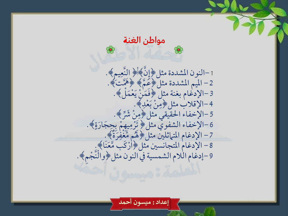 شرح تحفة الأطفال مع المعلمة ميسون أحمد أحكام النون و الميم المشددتين أحكام الميم الساكنة